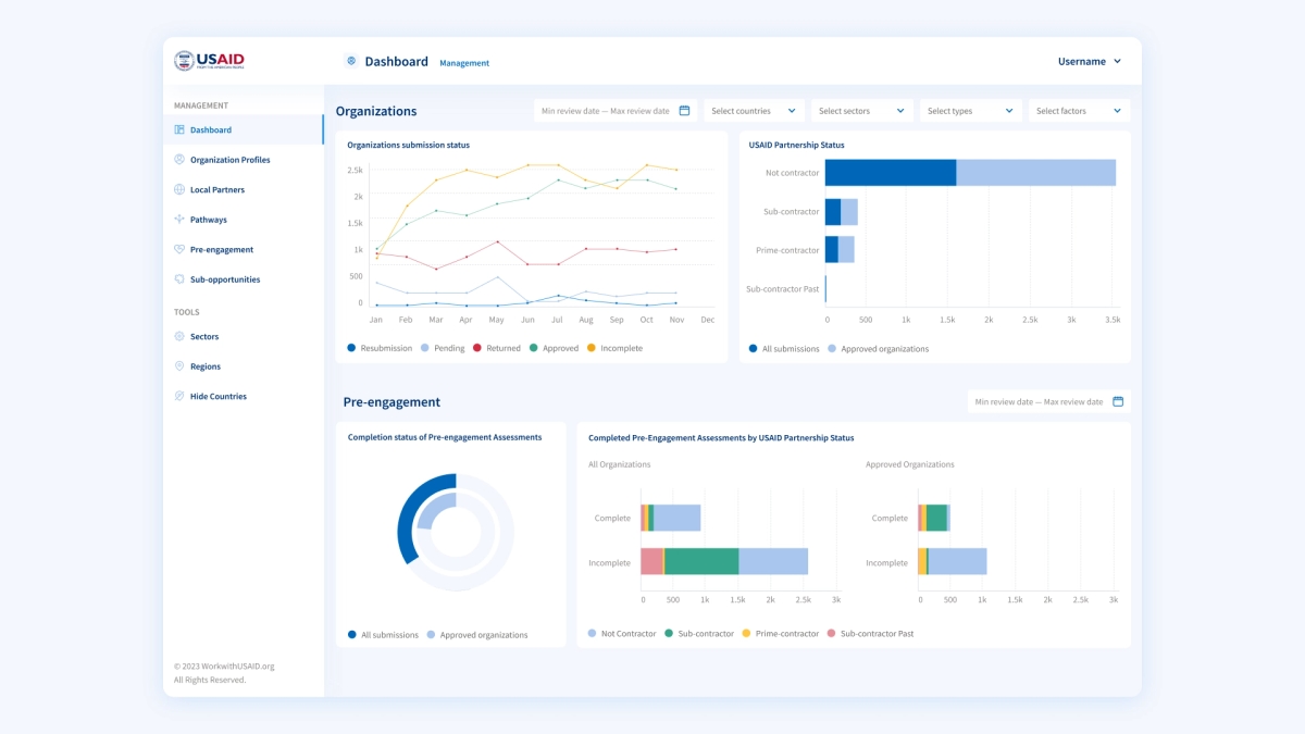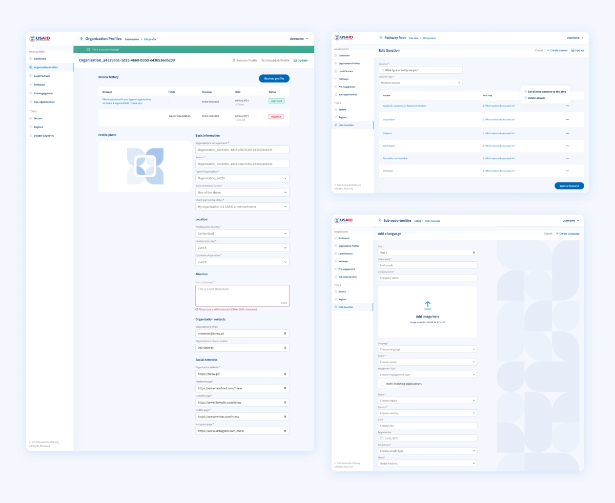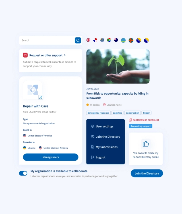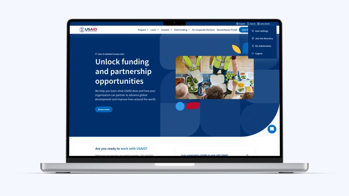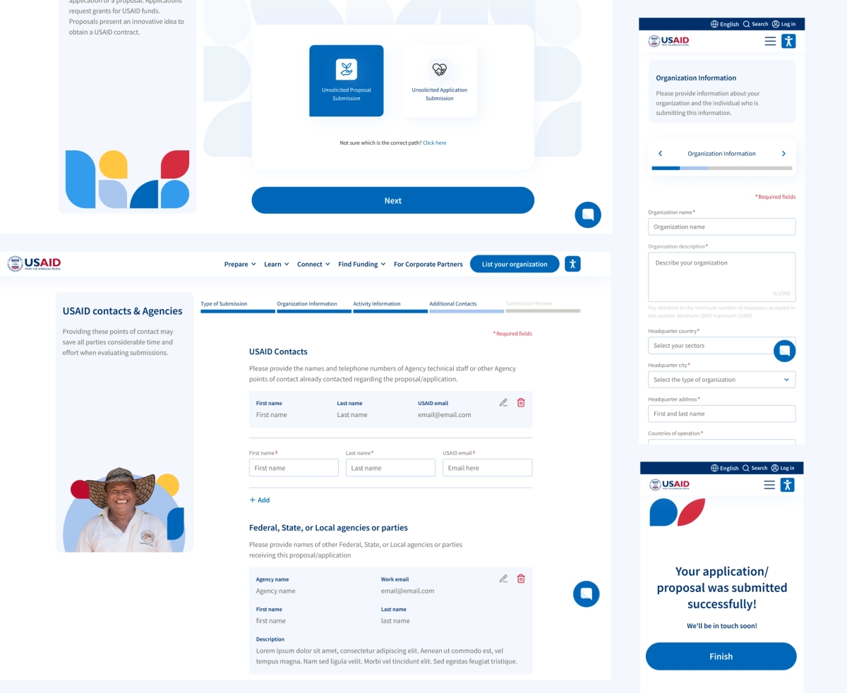 USAID needed to create a first-of-its-kind government platform to serve as a central hub for global organizations seeking to partner with them. In early 2022, Miew was tasked with adopting and improving the WorkwithUSAID.gov platform from a previous vendor. The challenge was not to build a new platform, but to continuously maintain and improve an existing one over the course of three years. We knew that as a U.S. Government platform, it was subject to external political factors, but our mission was to deliver scalable solutions that would enhance its functionality and earn the buy-in of the U.S. Government. This required Miew to build trust and demonstrate its capabilities through a series of incremental, high-impact solutions for a U.S. Government Agency. The platform needed to be maintained and enhanced with new features like unsolicited submissions and multilingual functionality, and eventually undergo a complete redesign to improve the user experience and underscore its status as a trusted foreign aid resource.